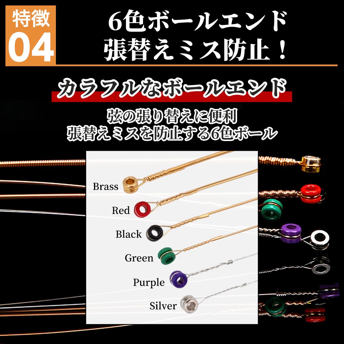 3組セット アコースティックギター弦 まとめ買い 弦 OTOYELL オトエール 弾きやすい 初心者 プロ ピック オリジナルクロス付き 6本 セット フォークギター弦 フォークギターの弦 フォスファーブロンズ カラフルポールエンド ギター弦 安い