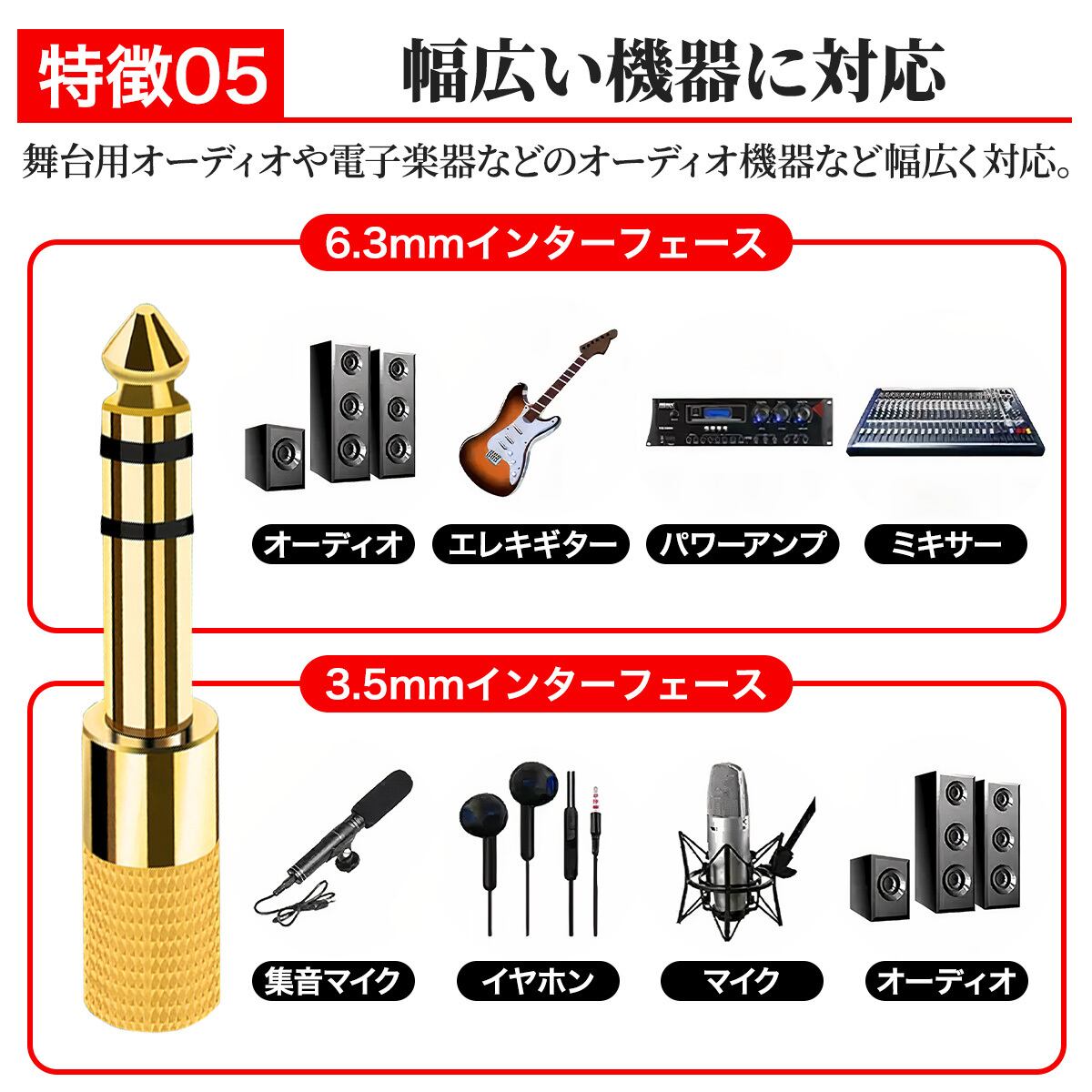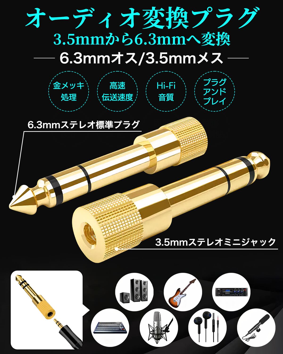 3.5mm→6.3mm変換対応:お手持ちの3.5mmステレオプラグを、6.3mmジャック機器に接続可能に。