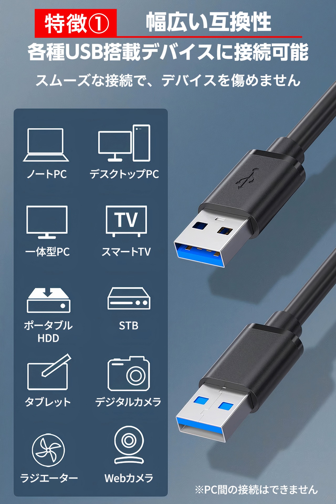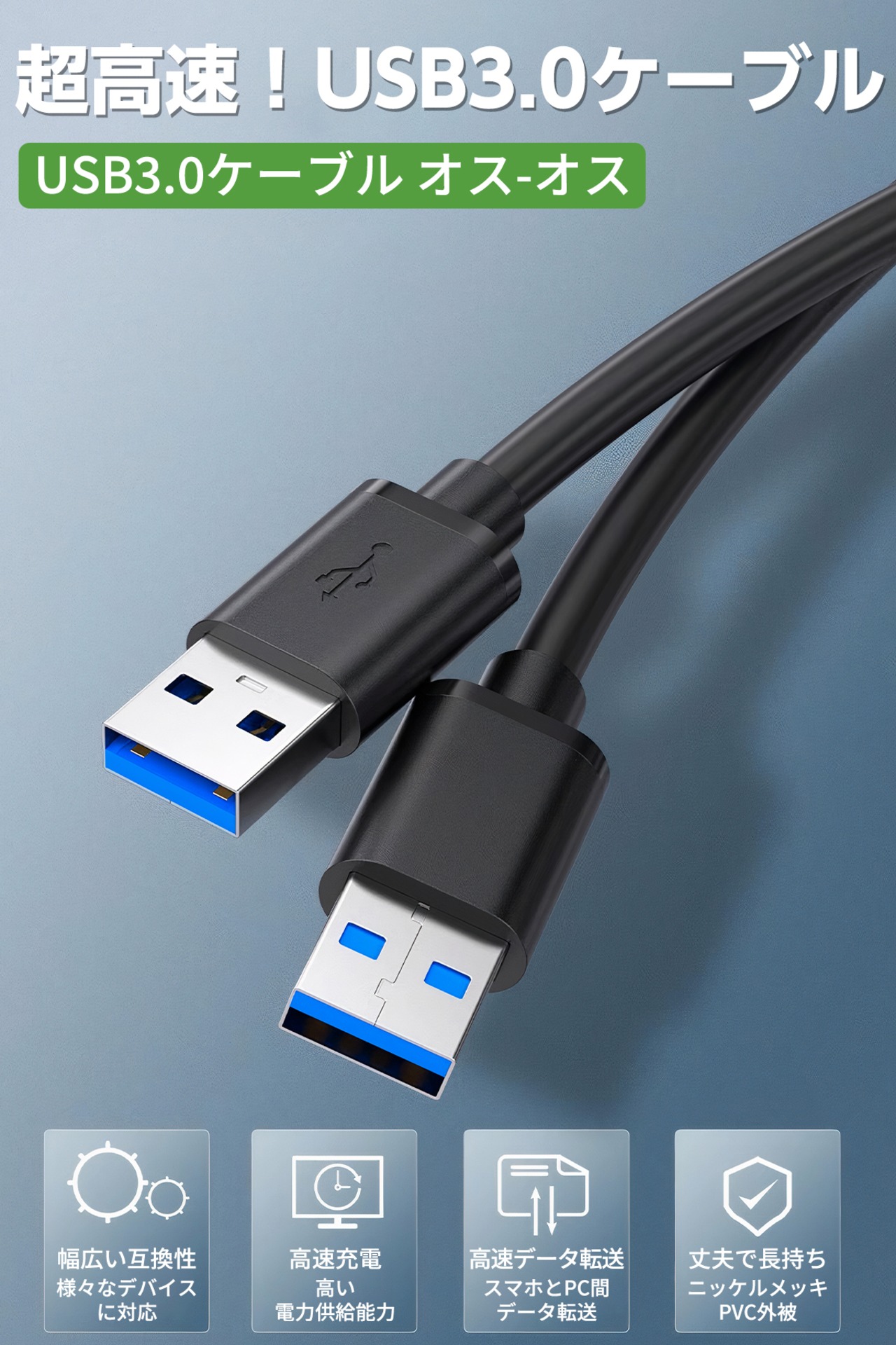 USB3.0 ケーブル Aオス Aオス 高速転送 充電対応 金メッキ 耐久ケーブル 0.5m 1m 1.5m 3m 5m ブラック パソコン 外付けHDD プリンター USBハブ対応 USB 延長 l字 アダプタ スイッチ タイプ タイプAオスオス 急速 タイプa A ハブ 写真 おしゃれ