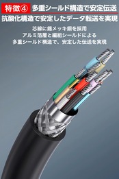 内部には高密度アルミ箔シールドを採用し、外部ノイズや信号干渉をしっかりブロック。