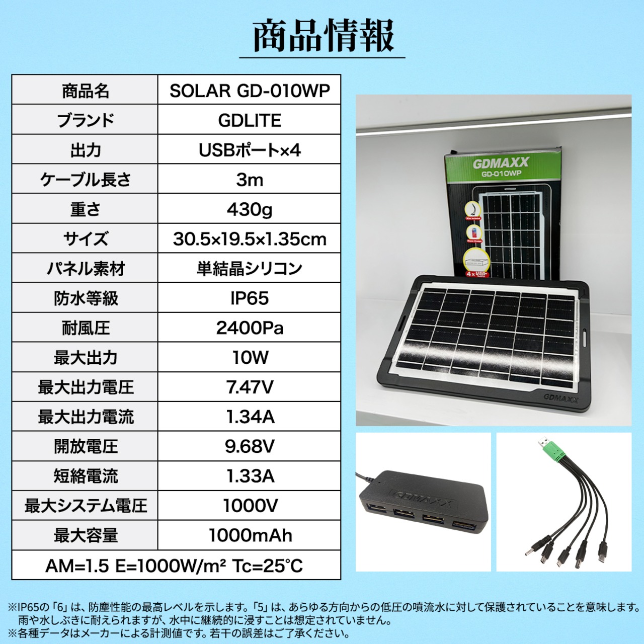 防災、アウトドア、日常の節電対策に、このSOLAR GD-010WPで安心と便利を手に入れてください!