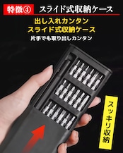 ビットがネジをしっかり吸着して保持するため、作業中の落下や紛失を防止。さらにケースを逆さにしてもビットが落ちない強力磁石を内蔵。片手で開閉できるスライド式ケースは、ガジェット好きを唸らせる機能美とコンパクトさを両立しました。