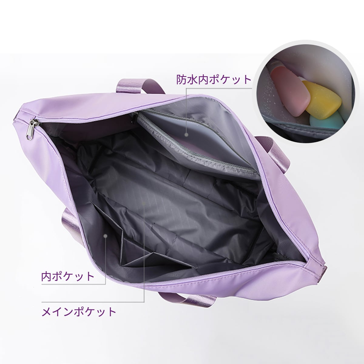 防水内ポケットに濡れたものをいれておけば、他のアイテムに濡れがうつりません。