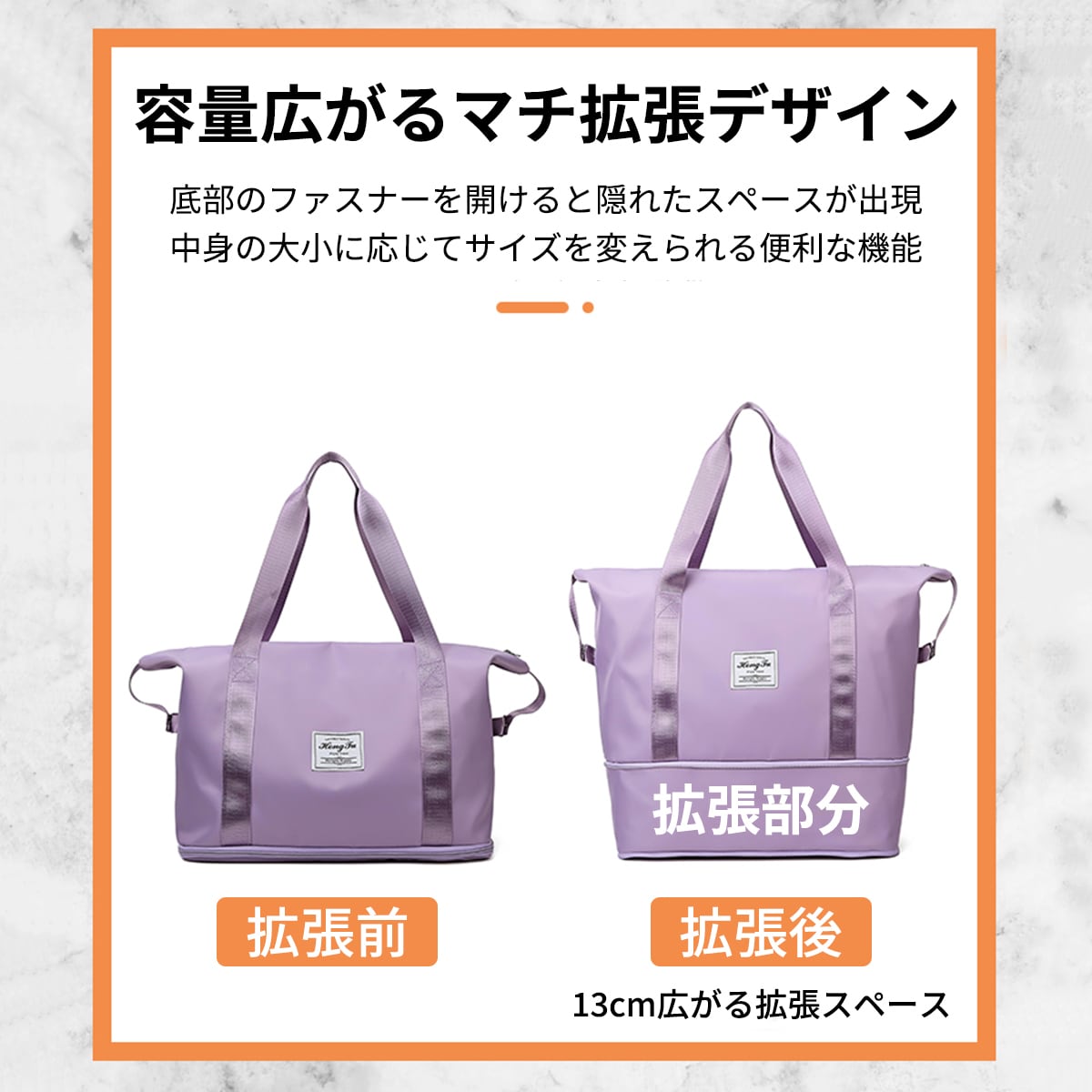 ファスナーを開けるだけで簡単にマチが広がる!うれしい容量拡張設計!高さが13cmも伸びる!