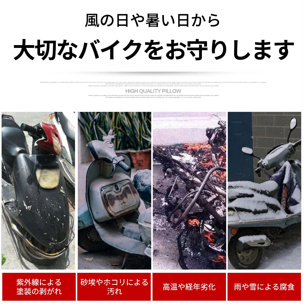 強化防水設計で、バイク全体をしっかりカバー