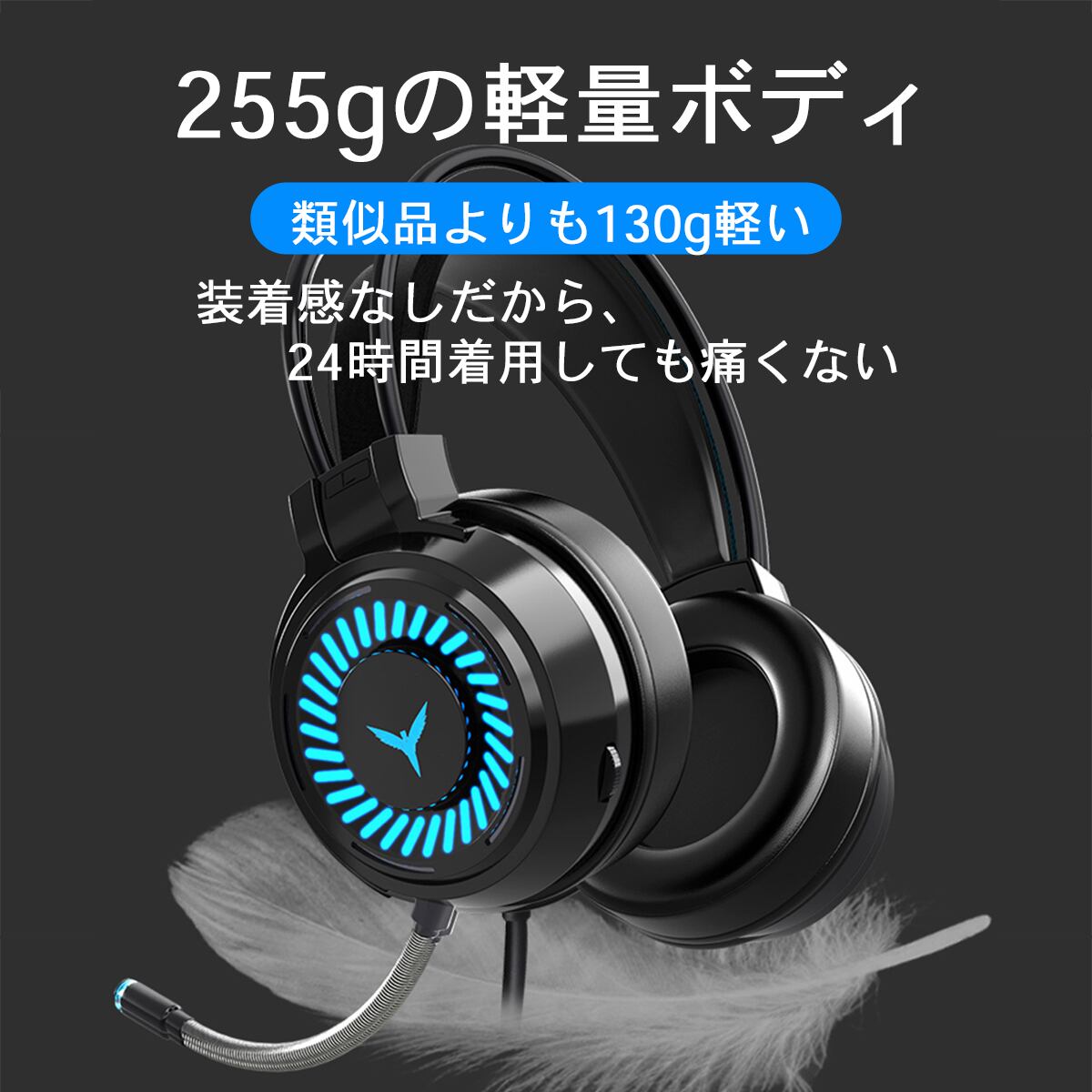 ・7色発光ライト付きのため、USBケーブル接続中は常時カラフル