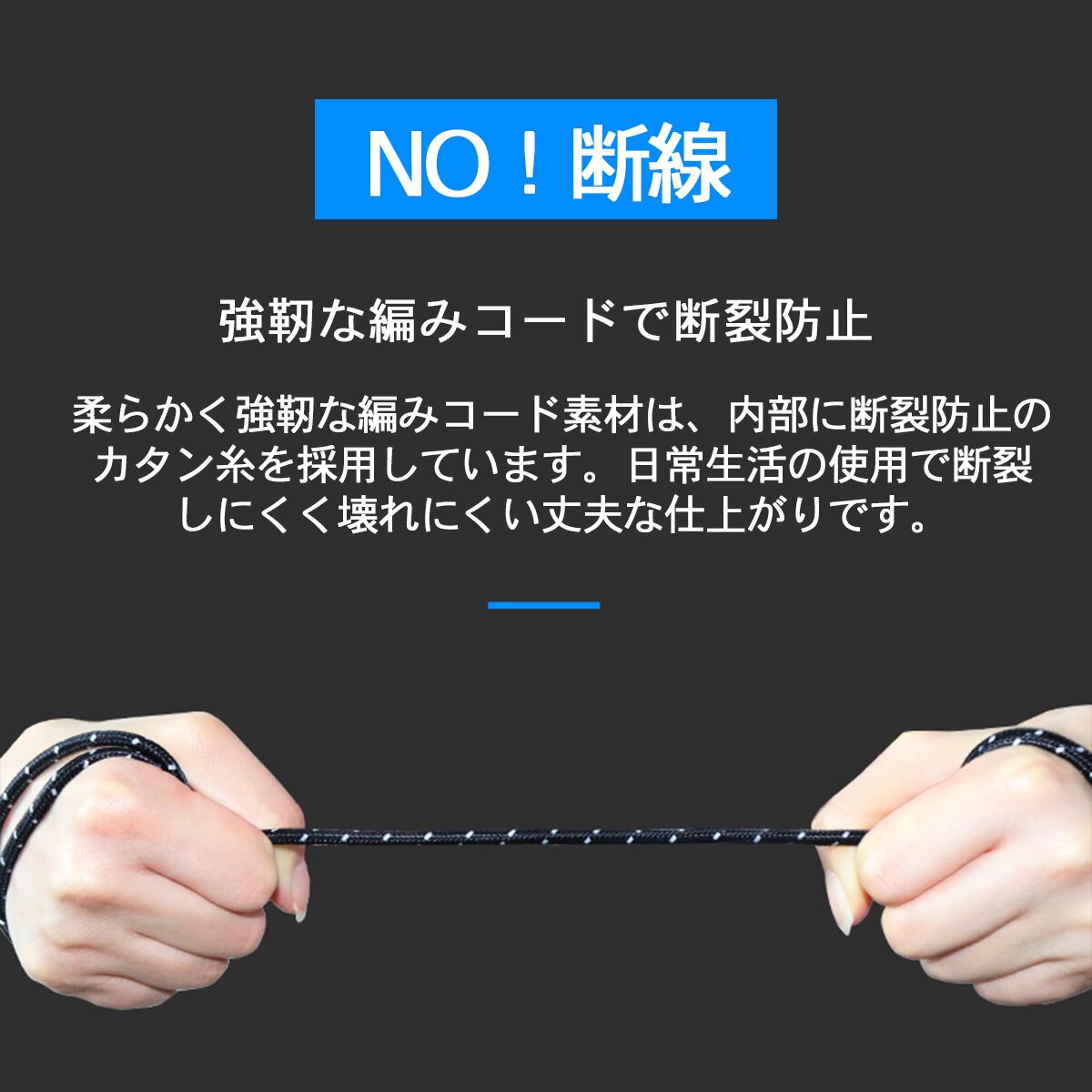 ・強靭な編みコード素材を使用のため、断裂しにくく壊れにくい