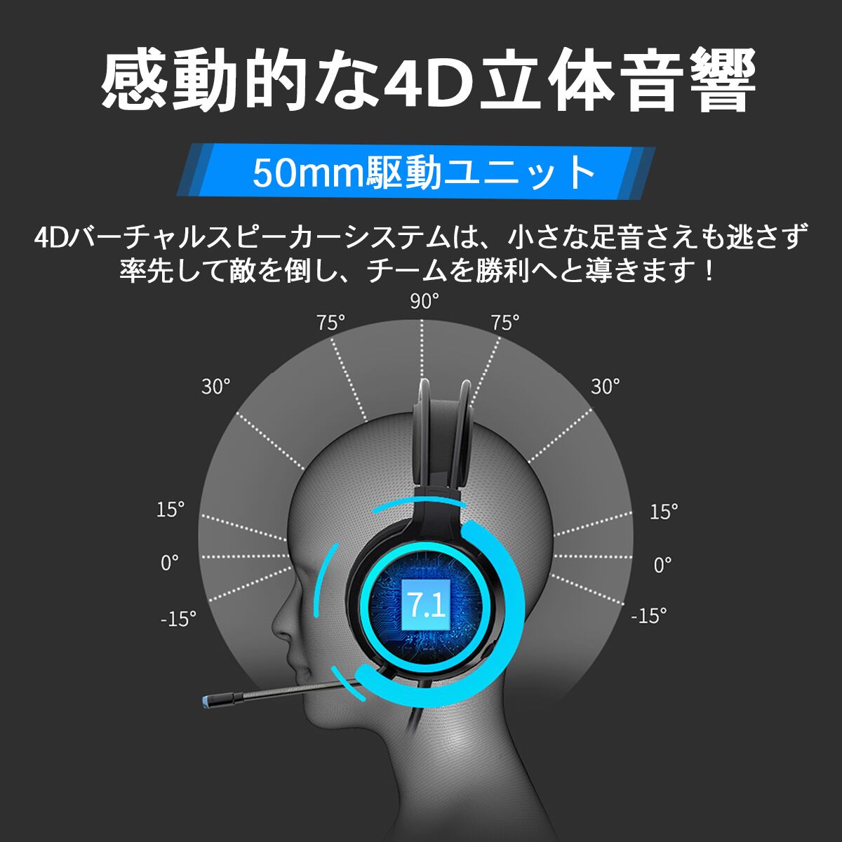 ・7.1chサラウンドと50mmビッグスピーカーユニット搭載により、高品質なHi-Fi4D立体音響を実現