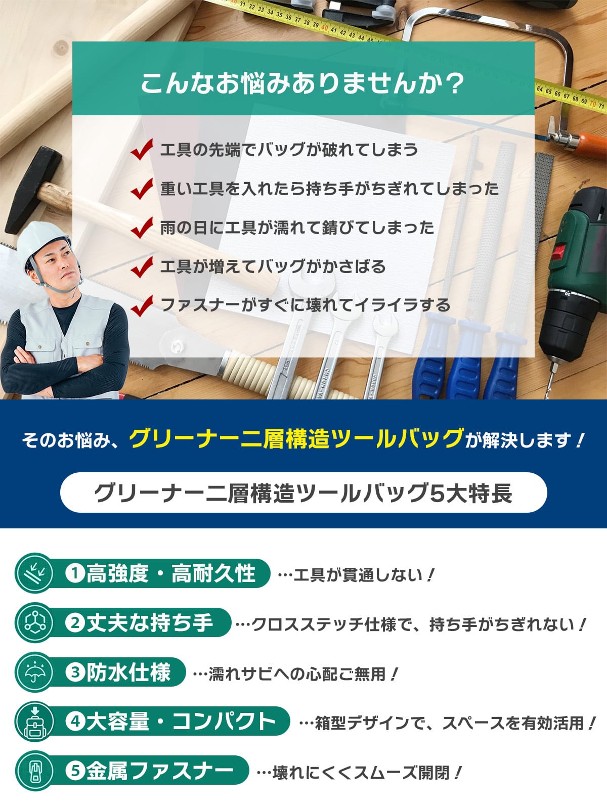→このグリーナーツールバッグは、そんなお悩みを解決するために生まれました。
