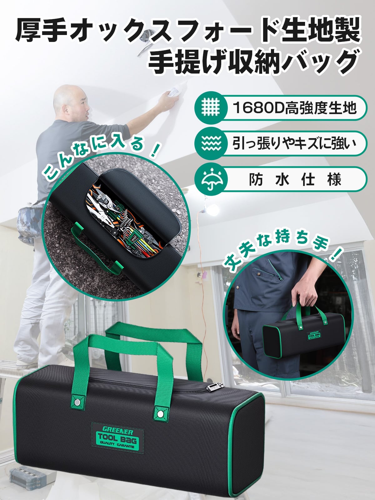 この手提げ収納工具バッグは、優れた耐久性と機能性を備えています。