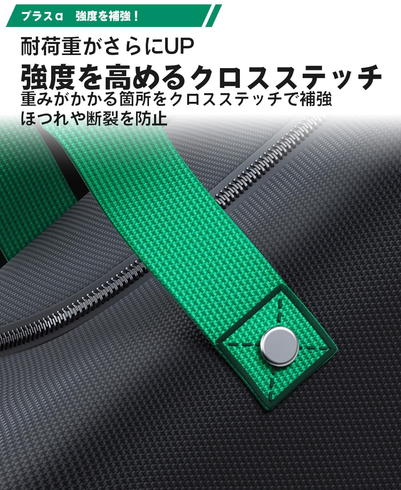 ・丈夫な持ち手:持ち手には重みがかかる箇所をクロスステッチで補強することで、強度と耐荷重が向上し、ほつれや断裂を防止します。
