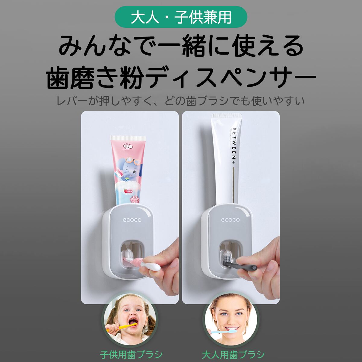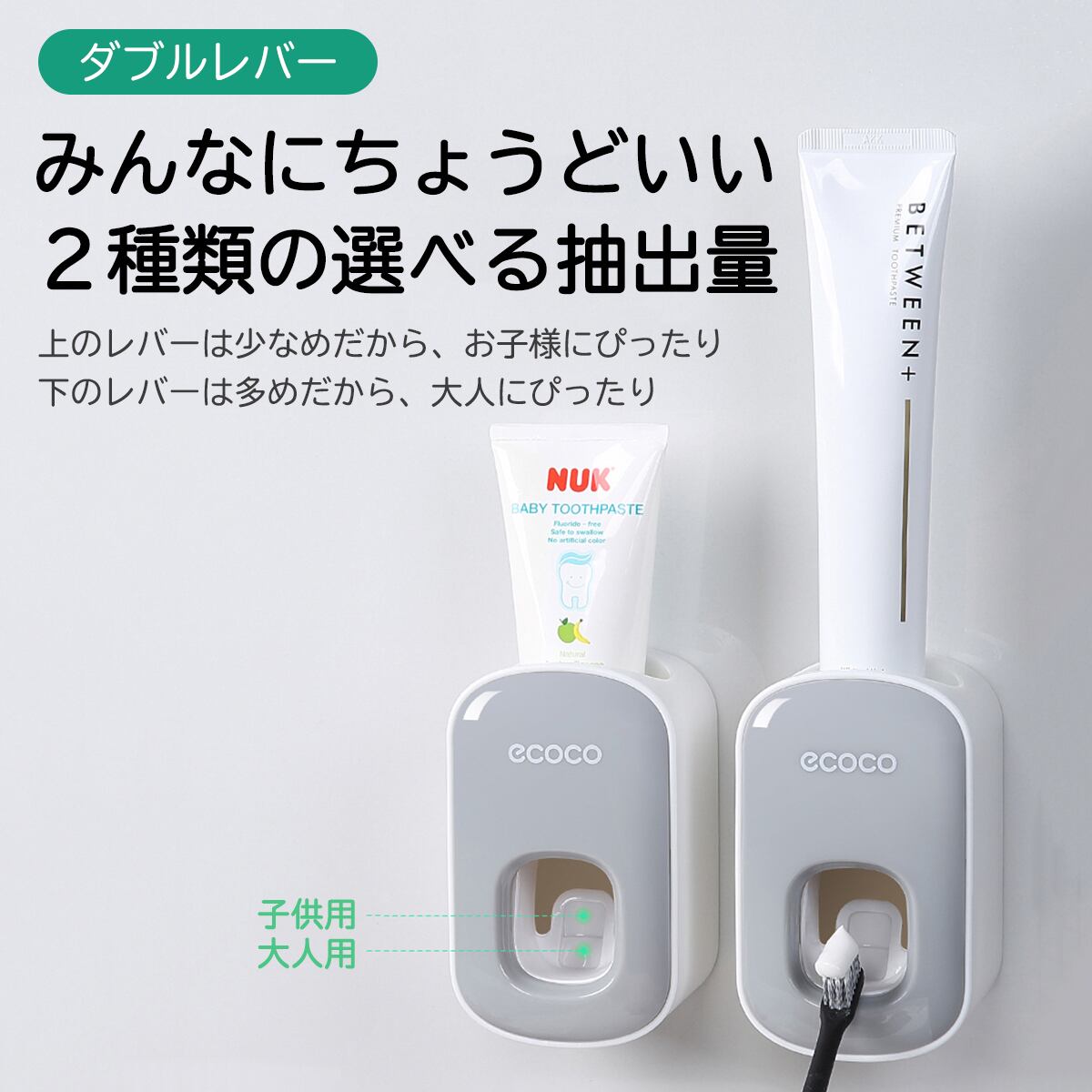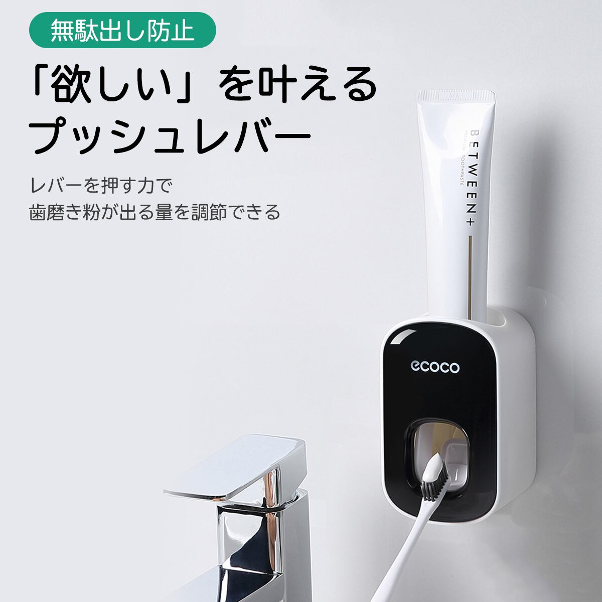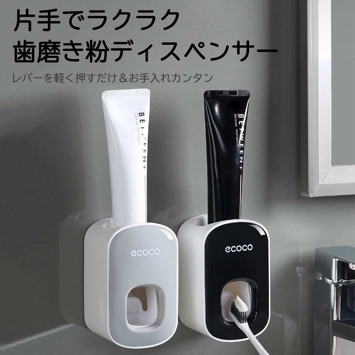 【お得】歯磨き粉 ディスペンサー 自動 ホルダー おしゃれ ソープ キッチン 小型 防水 レバー 片手 プッシュ 子供 大人 二段 穴あけ不要 装着