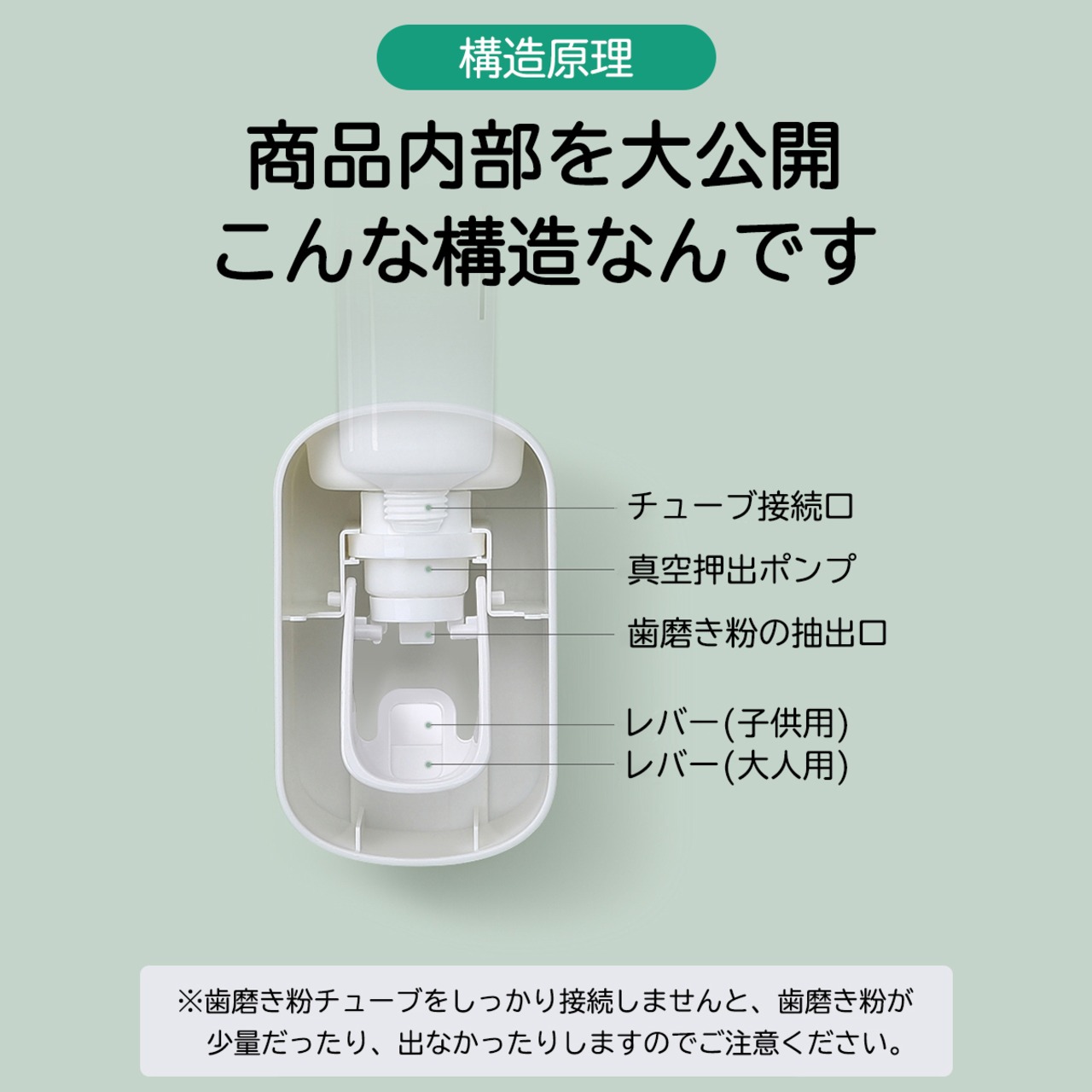 ※歯磨き粉チューブはしっかり接続してからご利用ください。接続ができていませんと、歯磨き粉の出る量が少量だったり、出ないことがあります。