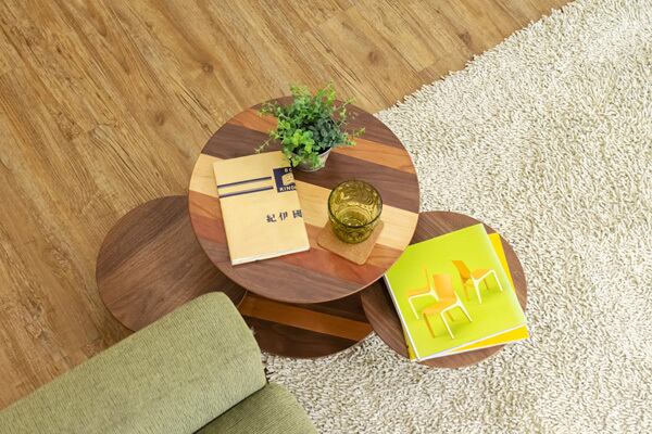 複数の材料を貼り合わせ積層させる加工のことで、カラフルな板に仕上げられています