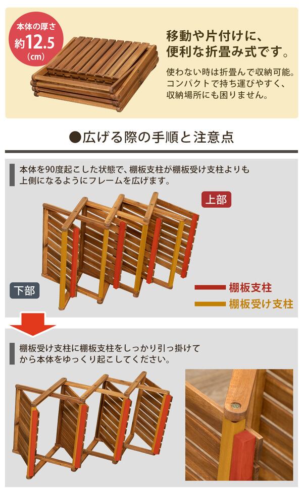 アカシア 折り畳みラック 4段