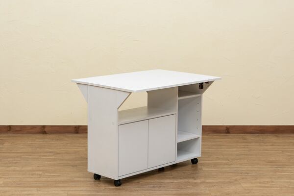 必要な時だけ天板を広げられるバタフライタイプの収納付きテーブルです