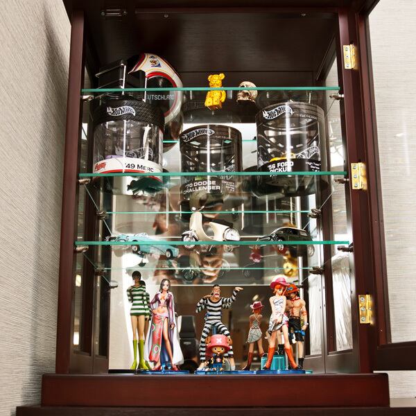 背面の鏡が並べたコレクション達の裏側も引き立たせてくれます