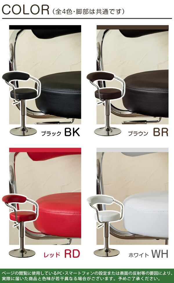ブラック(BK)、ブラウン(BR)、レッド(RD)、ホワイト(WH)の4色展開です。
