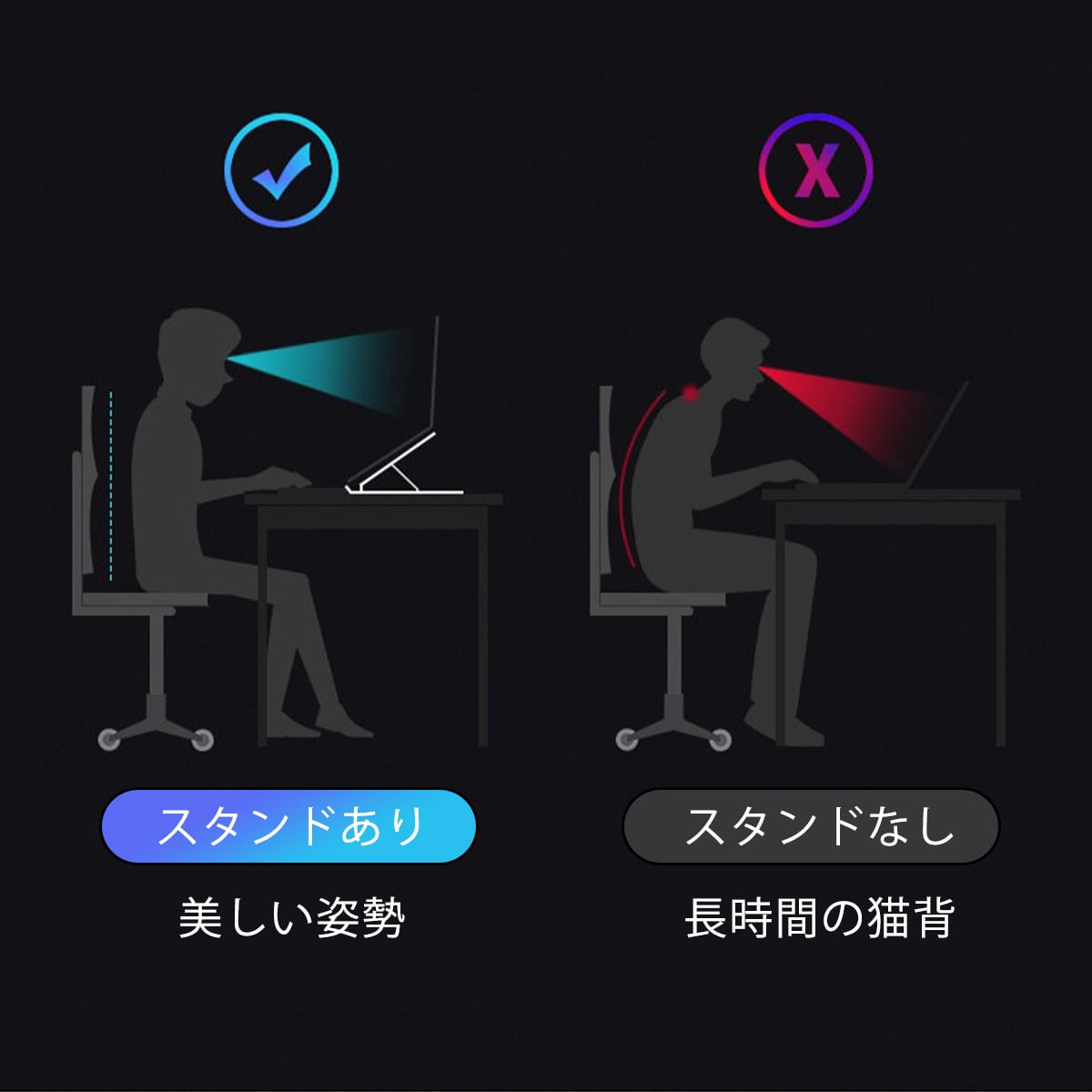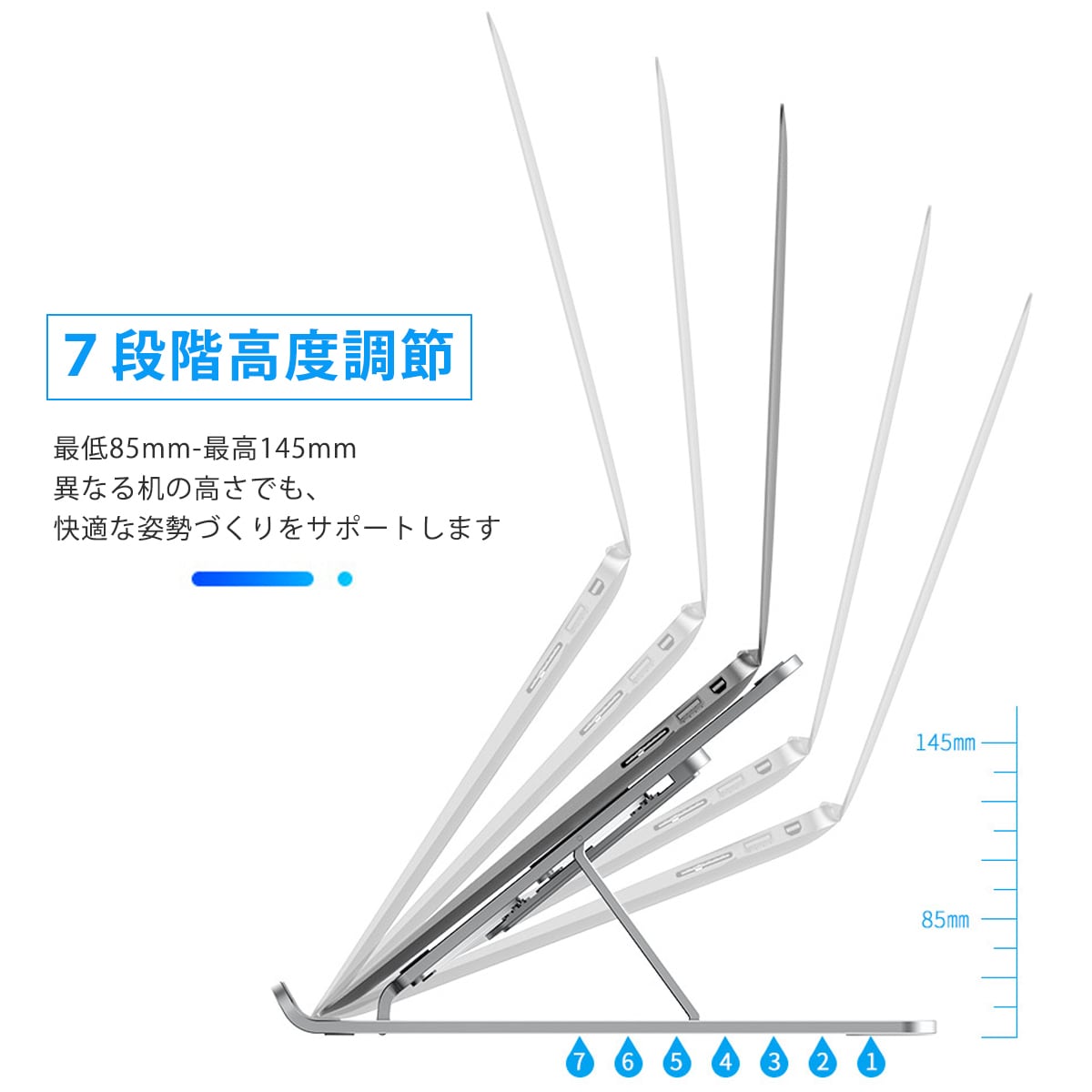 アルミ 肩こり 持ち運び 収納 滑り止め シンプル スタイリッシュ 高さ調整可能 コンパクト 角度 リモートワーク 冷却 放熱 Macbook 17インチ 収納ケース付き