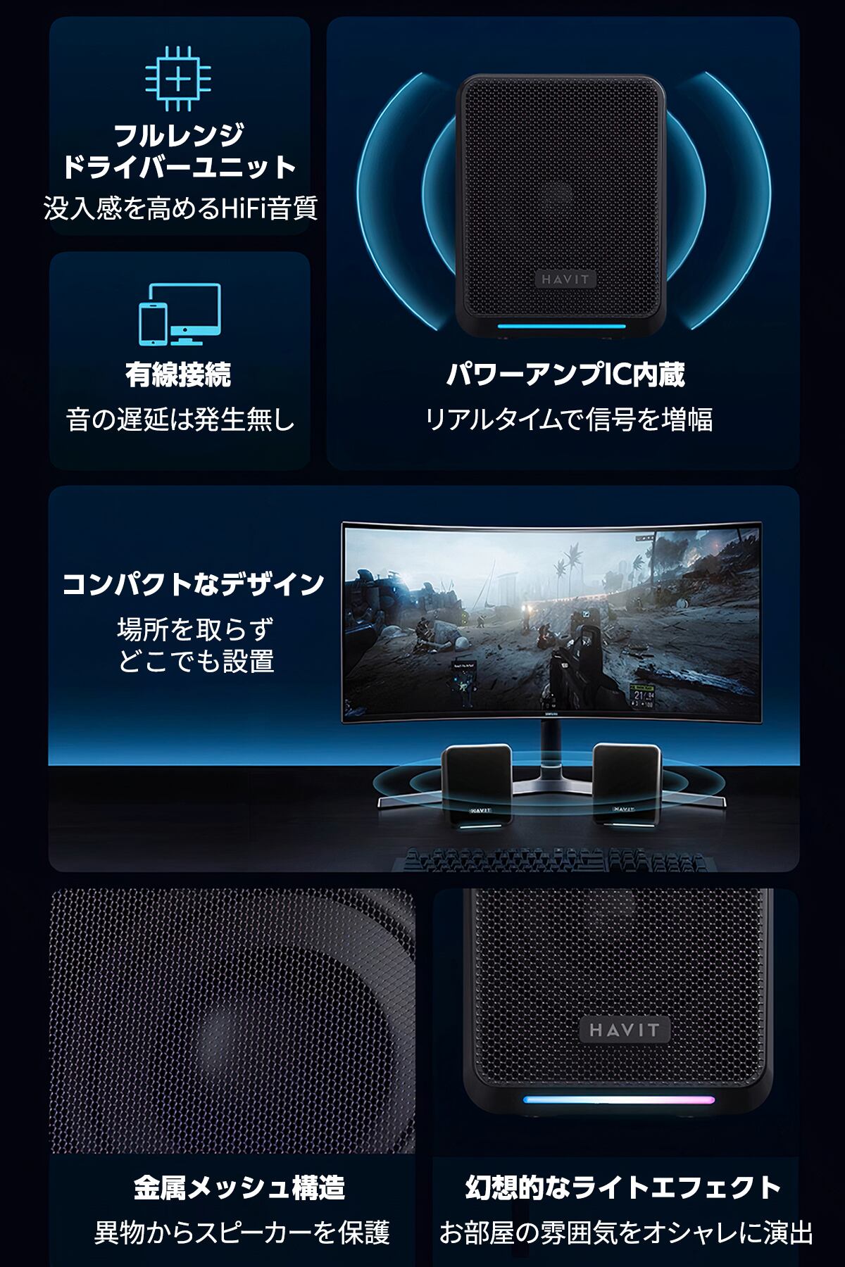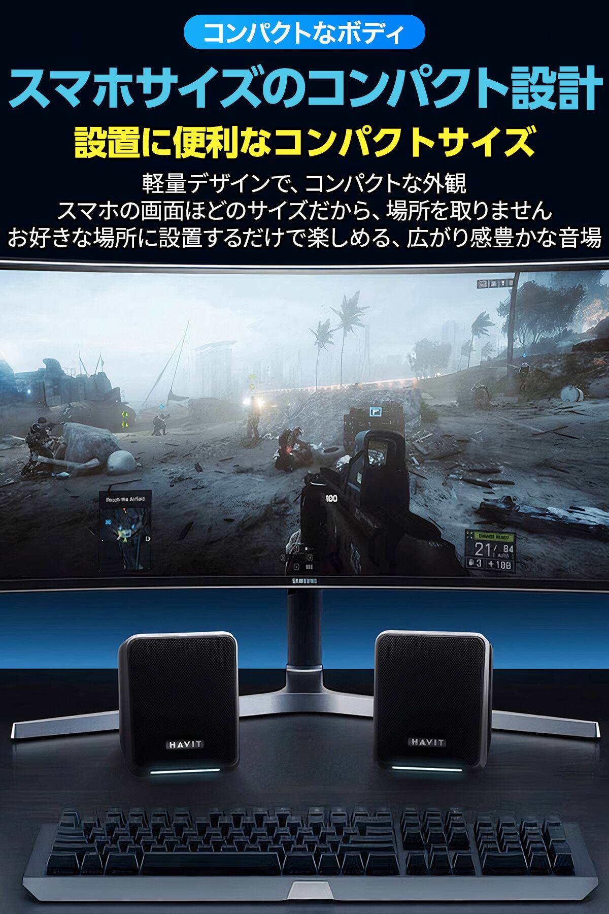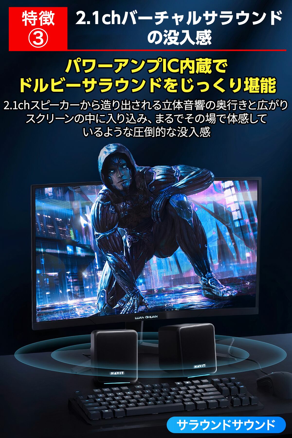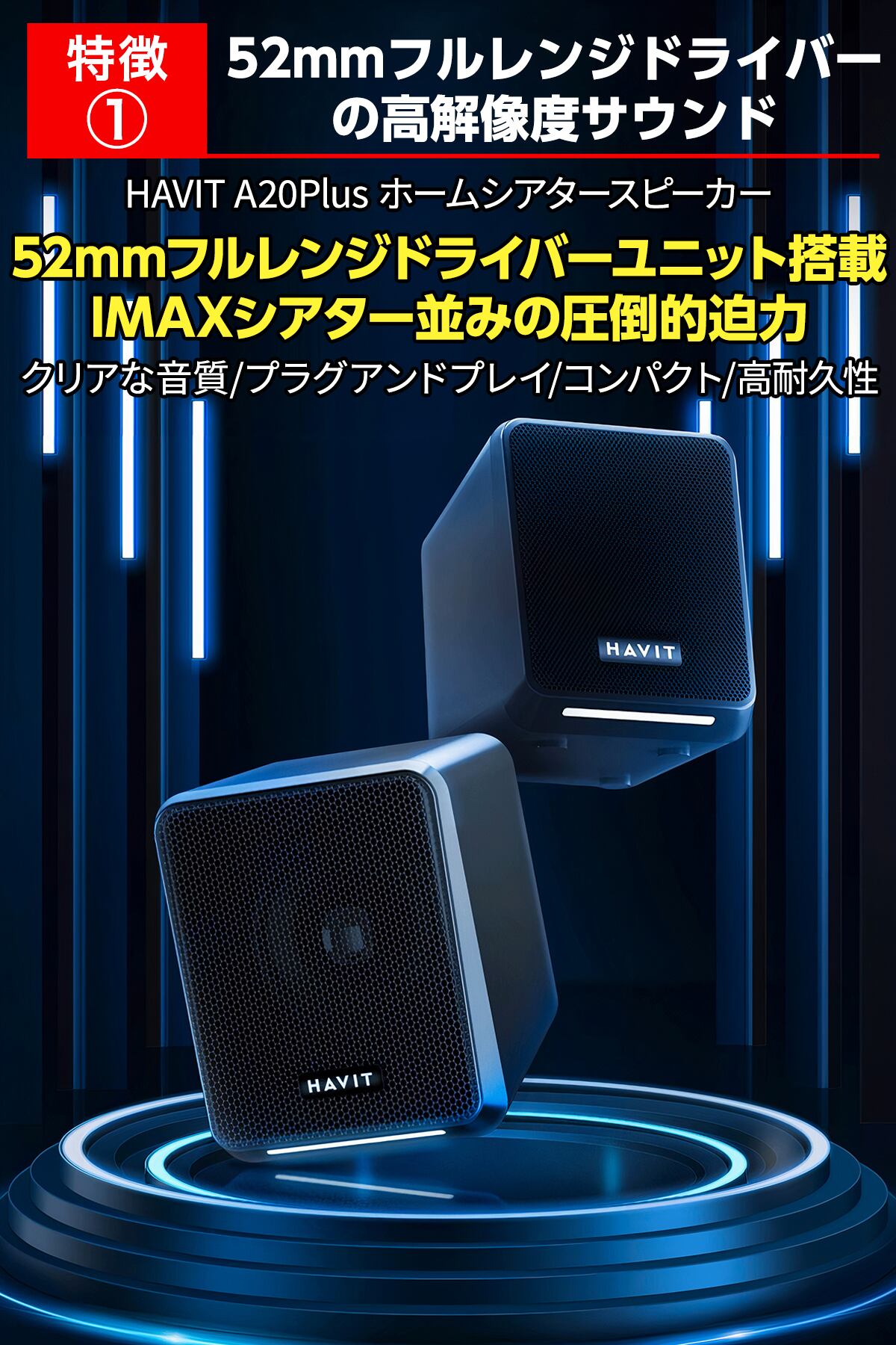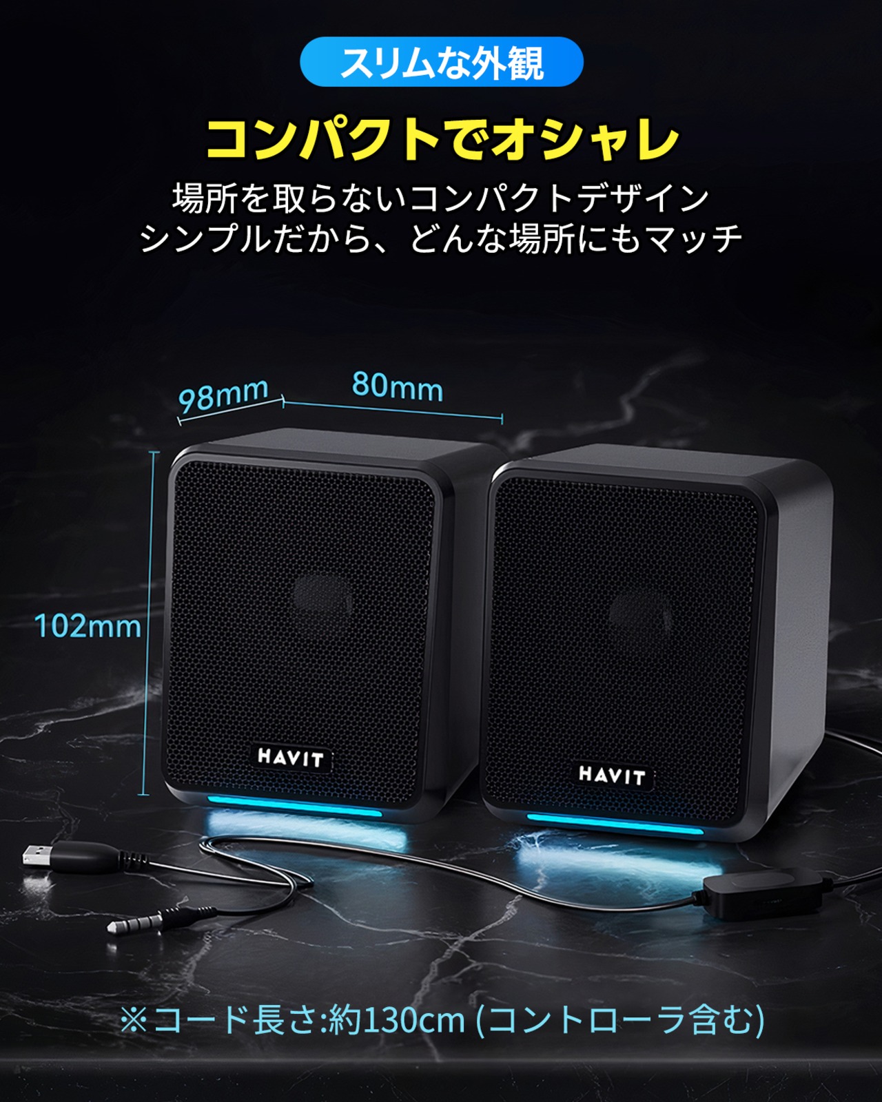 HAVIT A20Plusは、52mmフルレンジドライバーとパッシブラジエーターを搭載した2.1ch有線スピーカー。