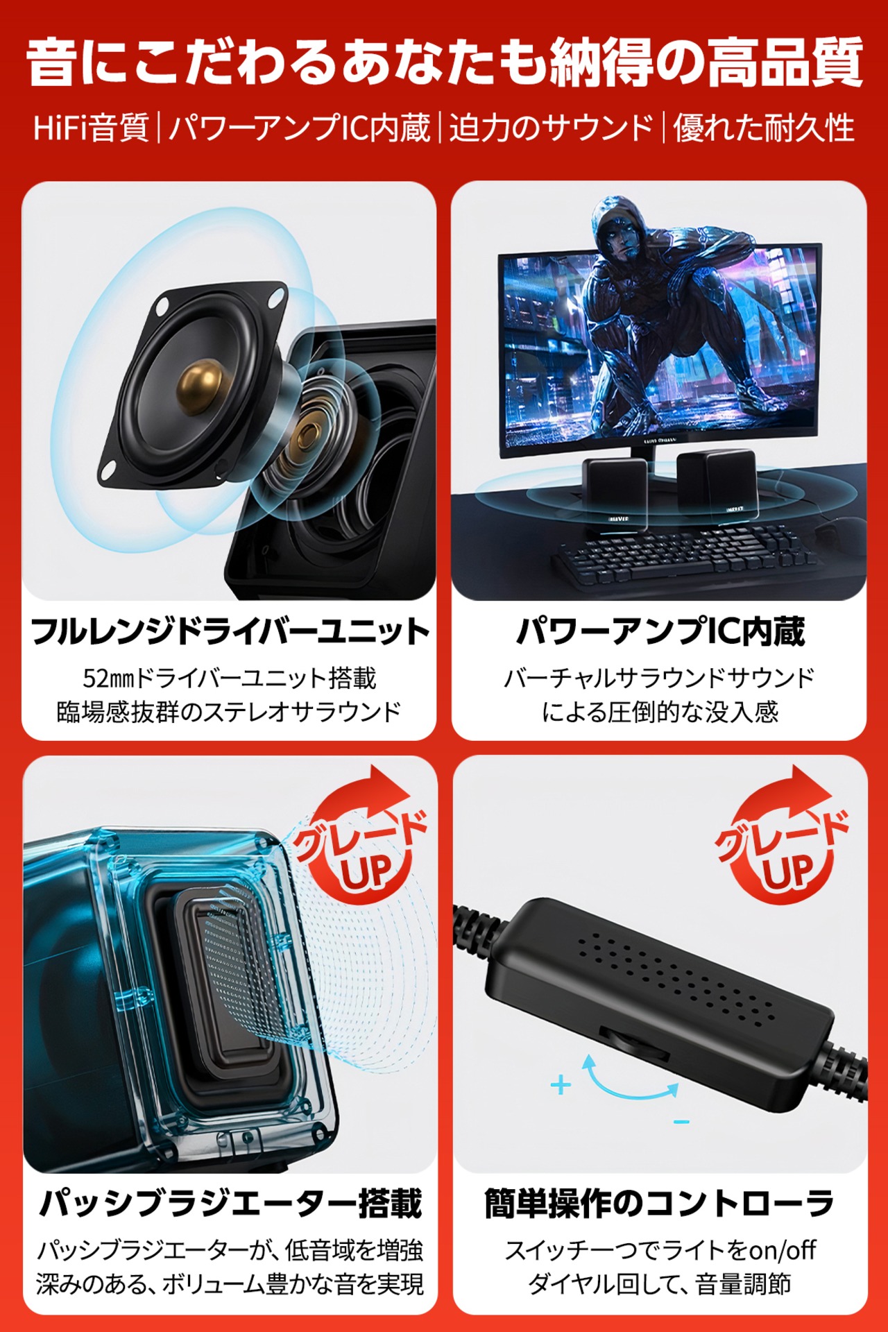 スピーカー テレビ 手元 pc 有線 手元スピーカー usb電源 usb 外部 小型 おすすめ 高音質 重低音 コスパ 安い 車 ゲーム ホームシアター タブレット ipad スマホ