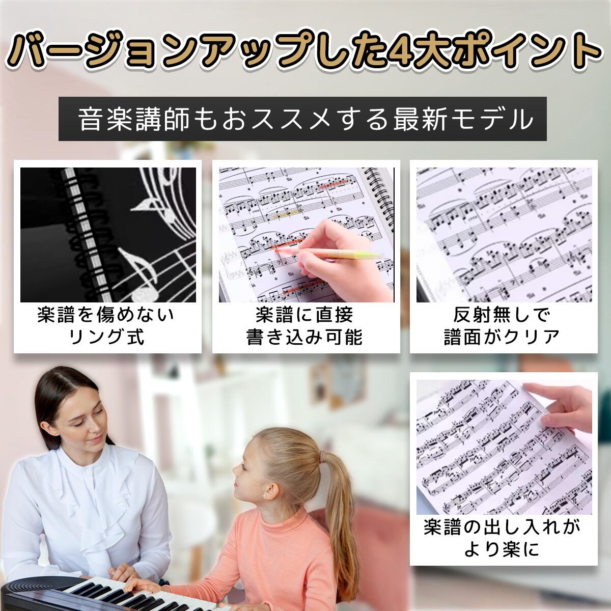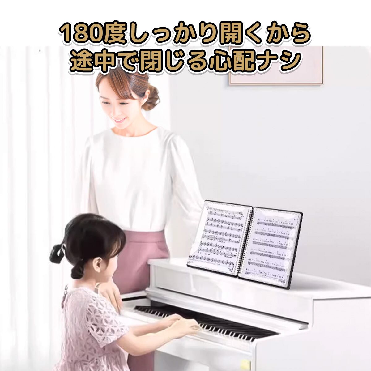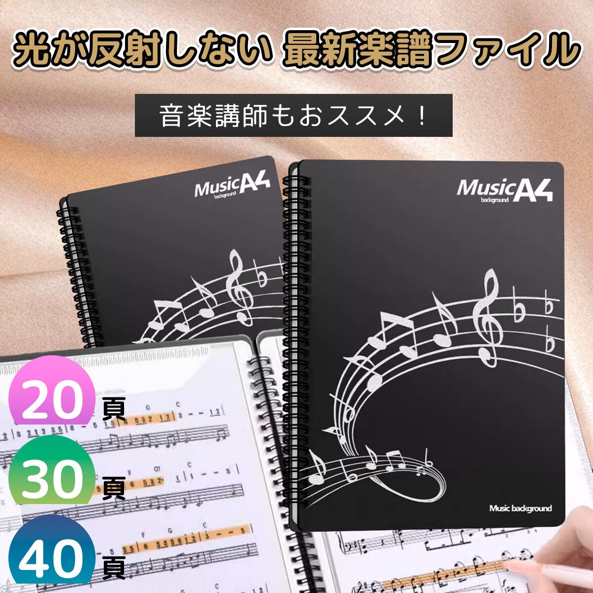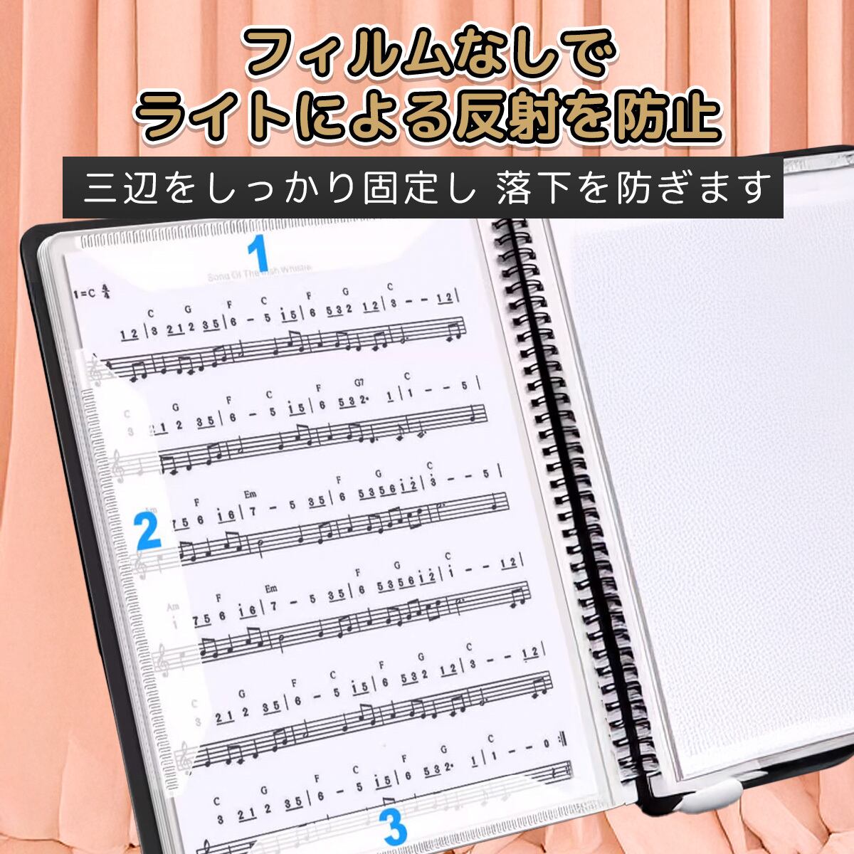 ファイルは、楽譜を傷めないリング式!