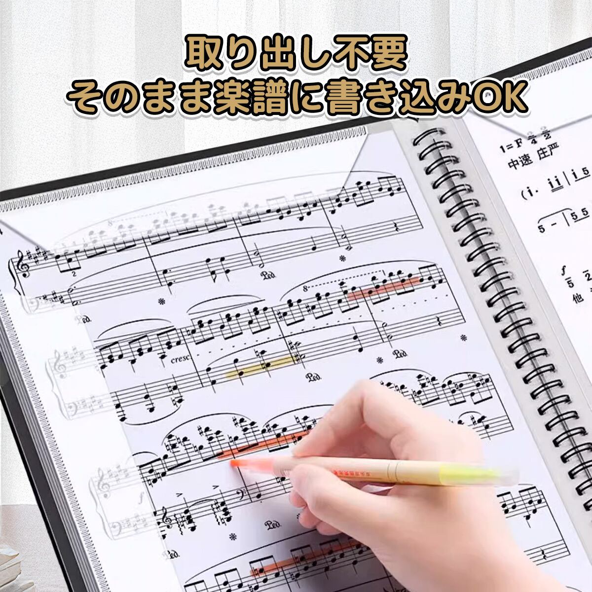 取り出し不要で、楽譜に直接書き込み可能!
